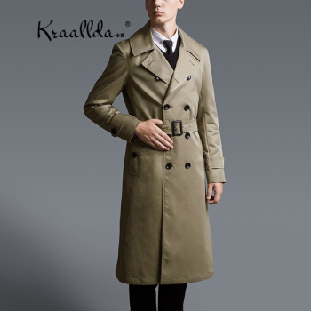 卡搭品牌轻奢男装休闲男士风衣中长款时尚商务春秋外套翻领大码潮大衣中年男装上衣 深卡其色 XL