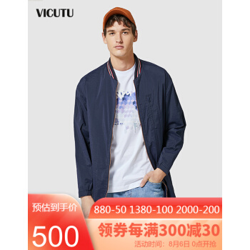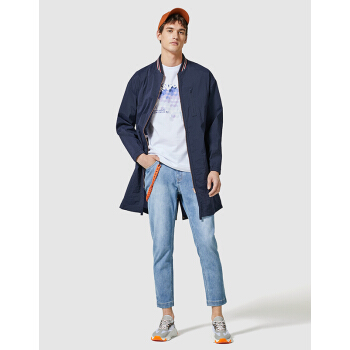 VICUTU/威可多男士风衣中长款时尚简约棒球领休闲修身外套男VRW18142868 蓝色 180/96A