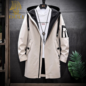 独励(DULI)青少年风衣男中长款韩版潮流春秋季2020新款初中高中学生帅气外套 DCQ8035卡其 XL