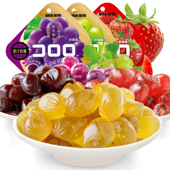 糖/糖果>>悠哈(UHA)网红零食 果汁软糖 葡萄/白葡萄/草莓味糖果 组合装 52g*3