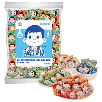 不二家 香醇牛奶糖 原味+草莓味+奶茶味+乳酸味 喜糖 糖果零食 情人节礼物(约145颗)500g/袋
