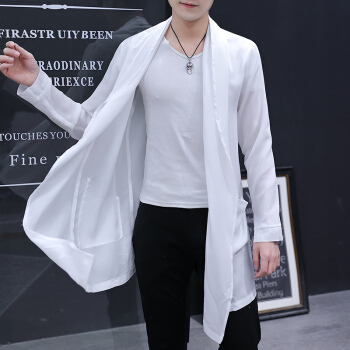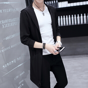 春夏季新款外套男中长款风衣薄款防晒披风男士帅气韩版修身大衣潮 M19黑色 175/XL