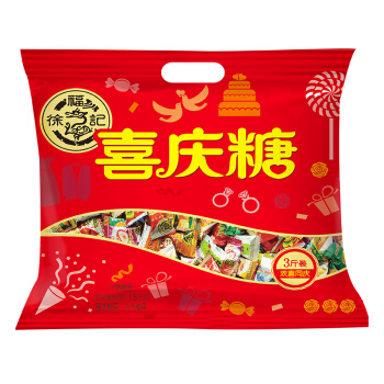 糖/糖果>>徐福记 三斤装喜糖喜庆糖1500g(约300颗)结婚礼糖果散装什锦混合硬糖老式夹心水果糖大礼包(新老包装随机发)
