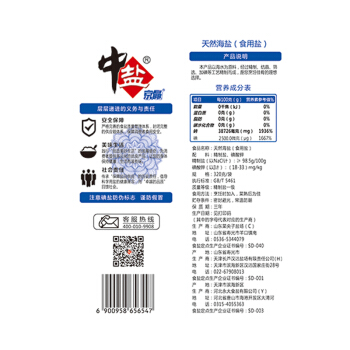 中盐 盐 天然海盐 加碘盐 精制海盐 调料调味品 320g 中盐京津冀出品
