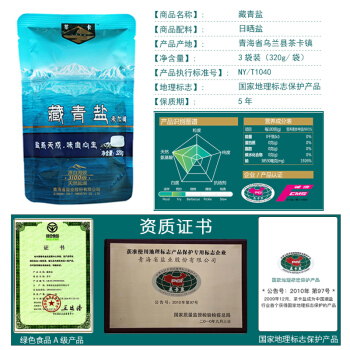 茶卡湖盐藏青盐不加碘食用盐320g*3包调味品不添加抗结剂健康鲜味