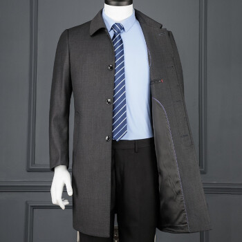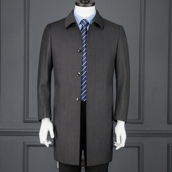 风衣>>美国苹果男装风衣男商务休闲中老年大码胖子肥佬中长款褂子秋冬新款免烫外套品牌男士衣服 812深灰 50/175/92A/L