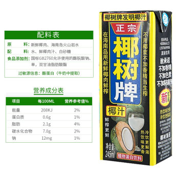 椰树 椰汁正宗椰树牌椰子汁饮料 六连包 245ml*6盒/组 植物蛋白饮料