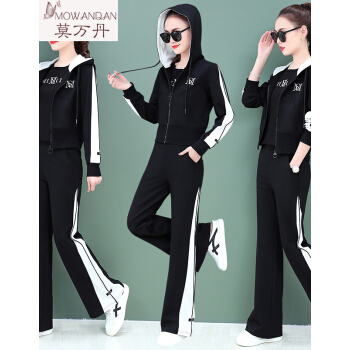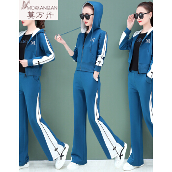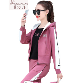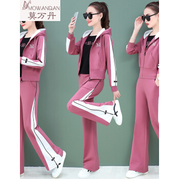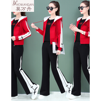 莫万丹高端新品卫衣女阔腿裤休闲运动套装女2020新款秋季韩版宽松洋气运动服三件套装MW9896 8813胭红 3XL
