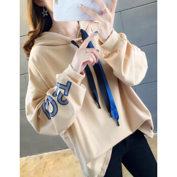 婪澈卫衣女2020秋季新款女装长袖韩版INS宽松连帽款假两件卫衣女潮 卡其色 L