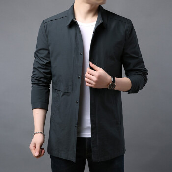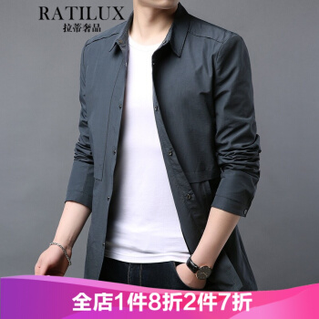 风衣>>拉蒂奢品RATILUX品牌中长款风衣男韩版商务休闲男装春秋翻领帅气潮流百搭夹克秋季外套 灰色(春秋常规款) 175/L