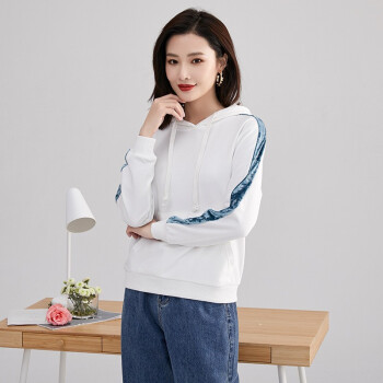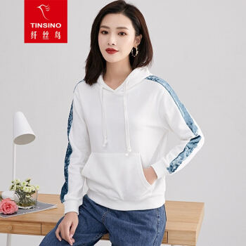 纤丝鸟 TINSINO 卫衣女2020秋季新品韩版慵懒风连帽卫衣时尚休闲长袖上衣宽松显瘦外套女 白绿色 请拍正确尺码