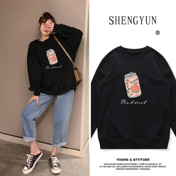 笙韵卫衣女宽松短款2020秋冬季新款薄款长袖t恤韩版宽松打底衫显瘦大码女装外套闺蜜装团体班服定制 黑色饮料薄款 M(建议95-110斤)