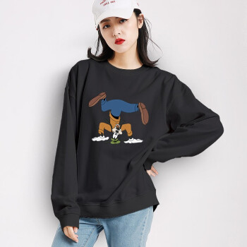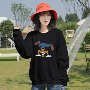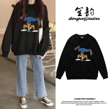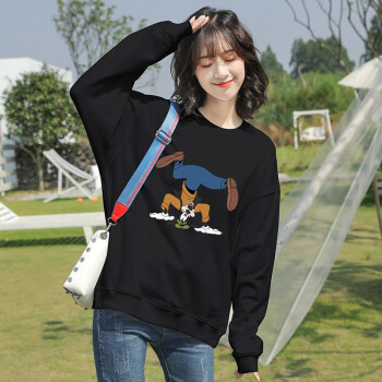 卫衣>>笙韵卫衣女学生2020秋冬季新款薄款长袖t恤韩版宽松怪味少女显瘦大码女装外套潮闺蜜装班服定制 黑色薄款 M(建议95-110斤内)