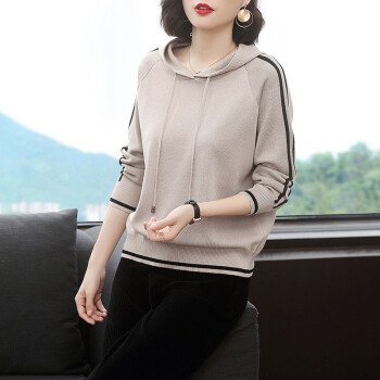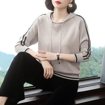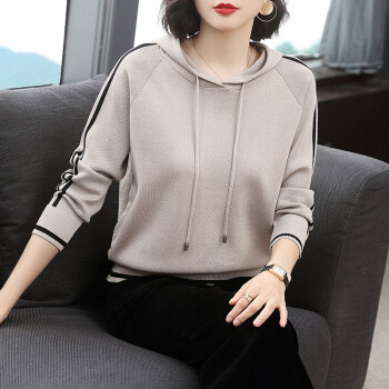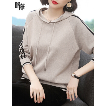【精选好货】晞薇女士卫衣2020春秋装新款时尚女装韩版带帽40岁中年妈妈宽松春秋百搭优雅上衣打底衫女 杏色 请拍正确尺码或咨询客服