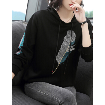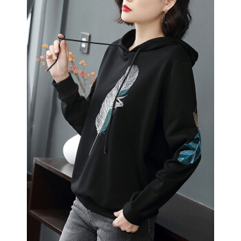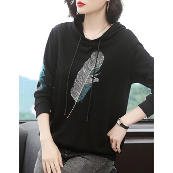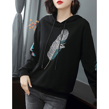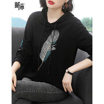 【精选好货】晞薇女士卫衣2020春秋季新款韩版带帽宽松百搭四十岁中年妈妈装慵懒洋气绣花上衣女 黑色 请拍正确尺码或咨询客服