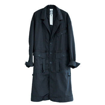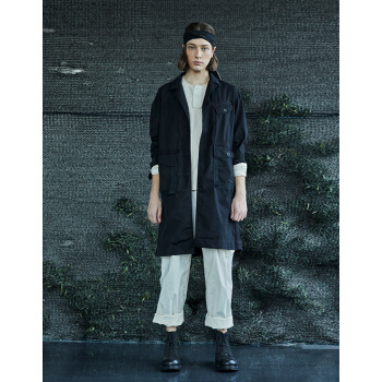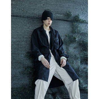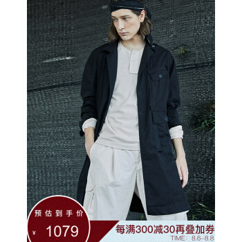野无风衣男原创设计男装2020秋季新款男士工装翻领长款黑色风衣外套男 粗粝黑 M