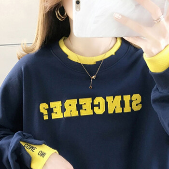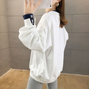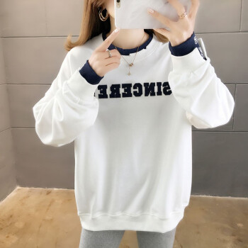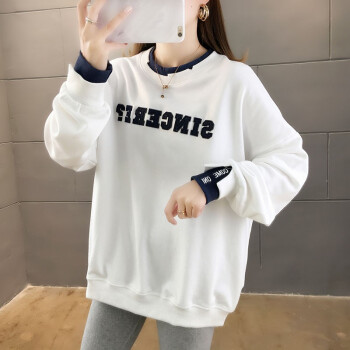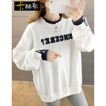 卫衣>>卡赫希卫衣女2020春秋季新款韩版宽松显瘦假两件女卫衣时尚百搭休闲ins潮学生上衣女5004 白色 请拍正确尺码