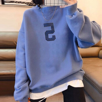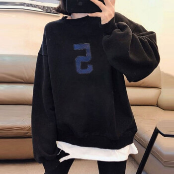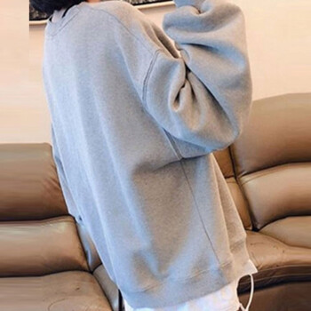 萱蓝卫衣女宽松纯棉2020秋季新款原宿风减龄拼接长袖女装上衣中长款百搭外套潮2326 灰色 XL
