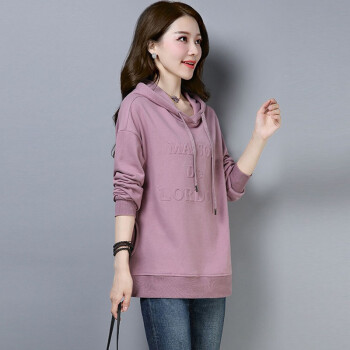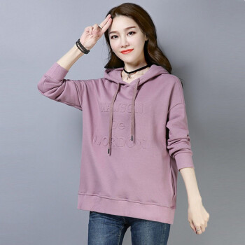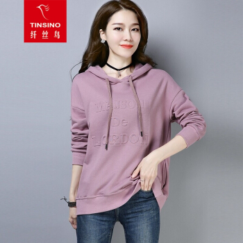 纤丝鸟 TINSINO 卫衣女2020秋季新款韩版慵懒风时尚连帽卫衣女宽松休闲ins百搭套头上衣 浅紫色 请拍正确尺码