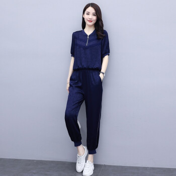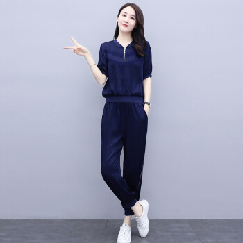 卫衣>>杰芭锅 卫衣套装女2020年韩版新款女夏季修身洋气时尚运动气质女神范九分裤子宽松显瘦休闲两件套潮 米白色 XL