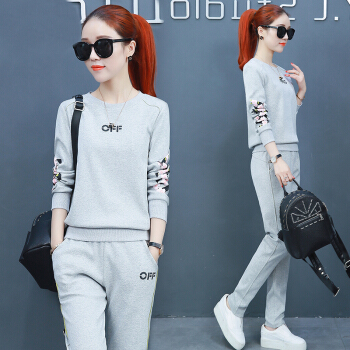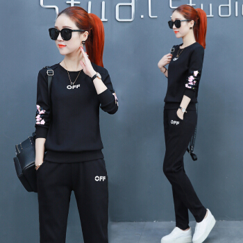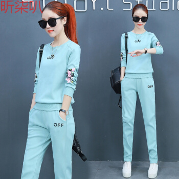 昕柒叭纯棉运动服套装女2020春季新款学生韩版宽松休闲卫衣两件套潮 蓝色 L(建议98~110斤)