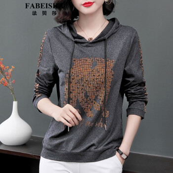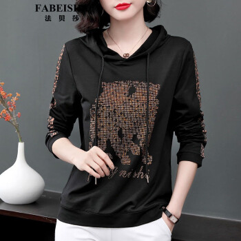 FABEISHA品牌卫衣女长袖2020秋季新款中年大码宽松休闲连帽上衣 白色 M