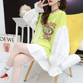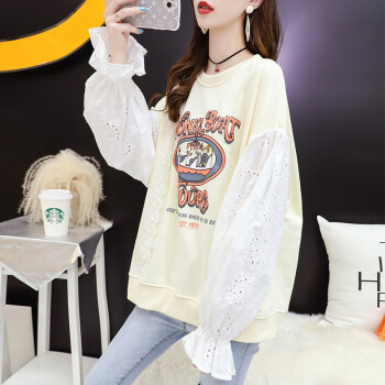 小赖猴蕾丝拼接卫衣女长袖薄外套早秋2020新款韩版宽松慵懒风上衣 橘色 均码