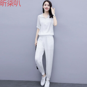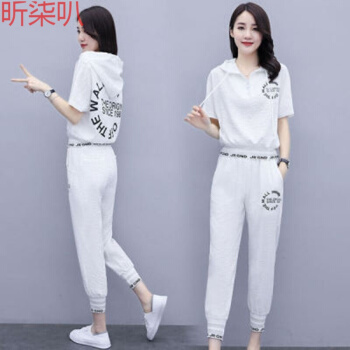 昕柒叭卫衣女减龄百搭显瘦抽绳连帽纯色上衣宽松大码九分裤两件套女 1117白 L