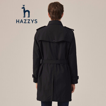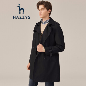 【商场同款】哈吉斯HAZZYS 秋季风衣男时尚简约英伦风衣外套ASWZH09CH01 黑色BK 175/96A 48