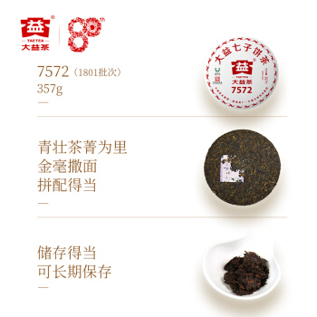 大益(TAETEA)普洱茶饼茶 7572标杆熟茶357g 中华老字号1801批次