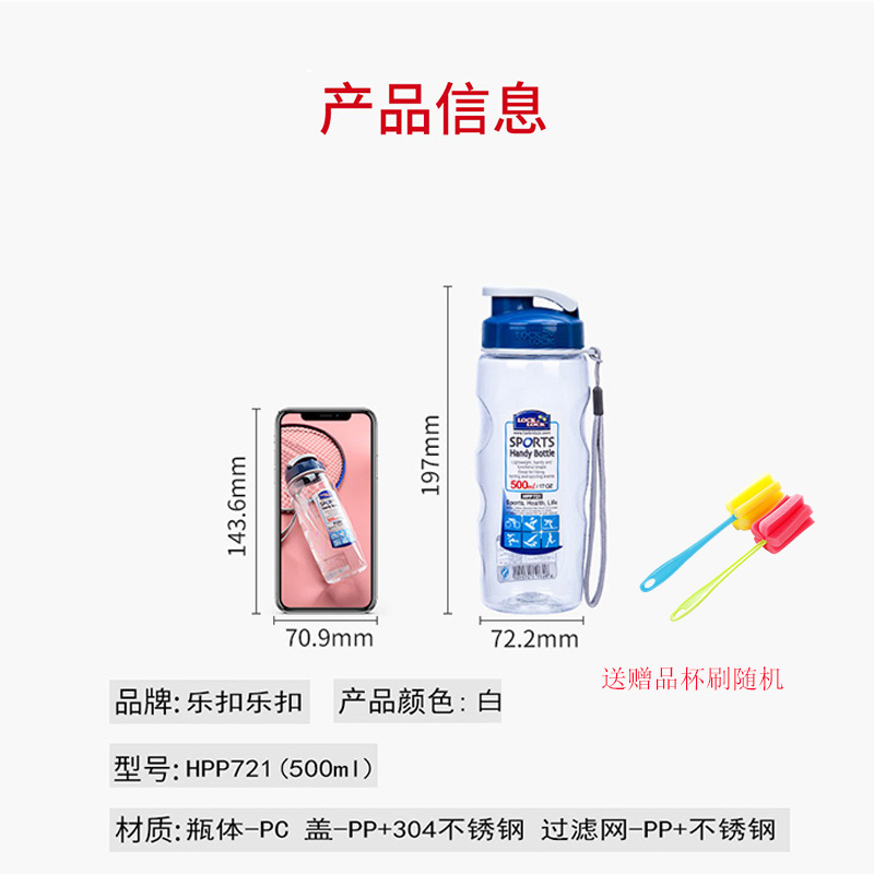 500ml男女学生健身水壶运动便携塑料水杯 买就送杯刷【塑料/颜色自选】