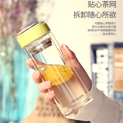 便携耐热防烫玻璃水杯300ml 送杯刷【玻璃/颜色自选】