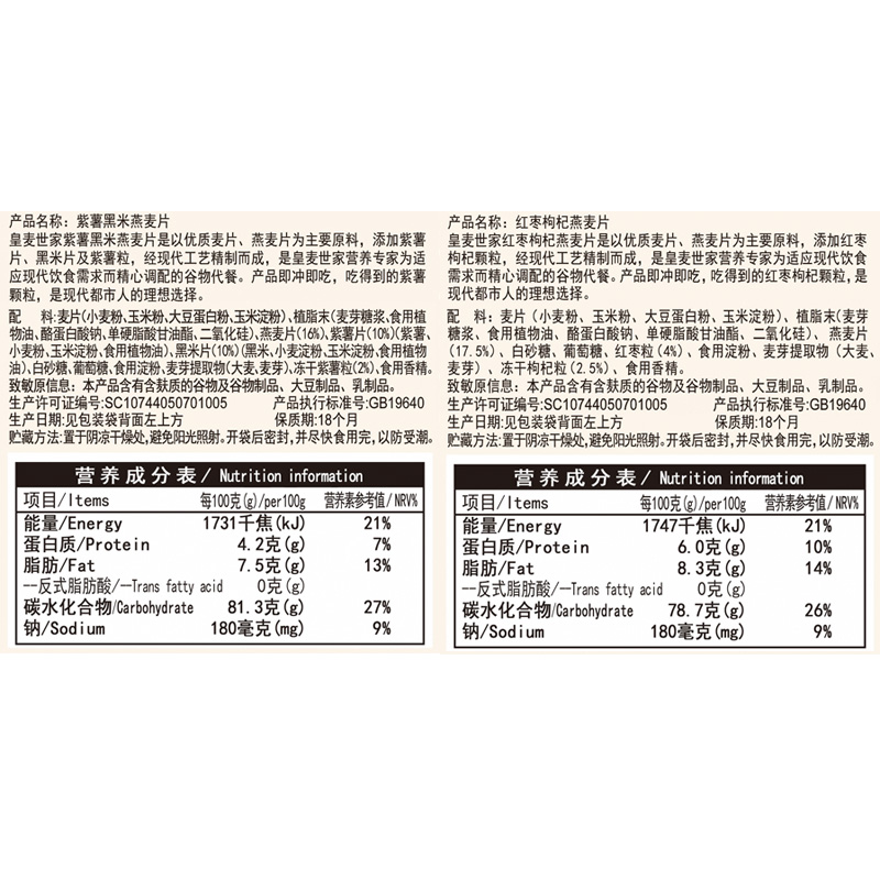 红枣枸杞&紫薯黑米燕麦片组合装