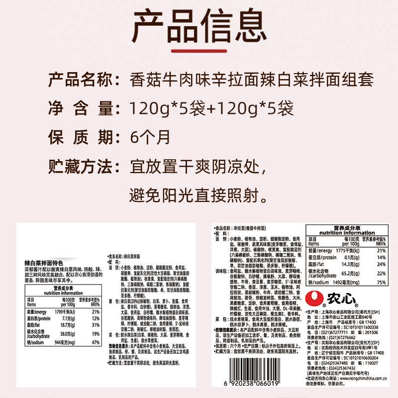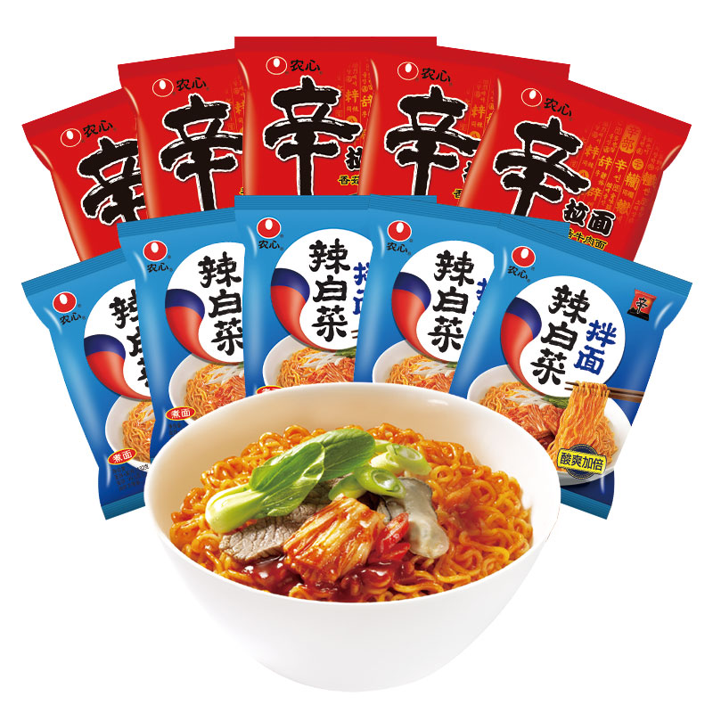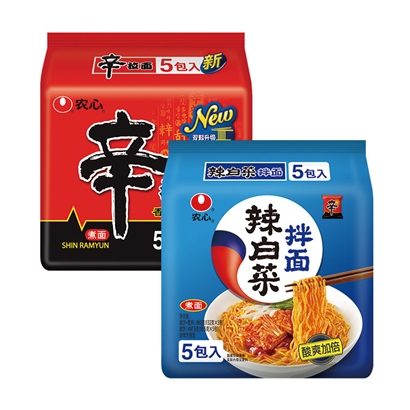 农心辛拉面香菇牛肉味5连包&农心辣白菜拌面5连包
