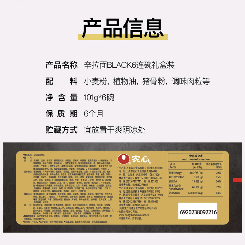 农心辛拉面Black方便面(可微波加热食用) 碗面泡面