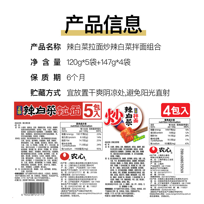 农心辣白菜拉面方便面&农心炒辣白菜拌面(含韩国切片泡菜)即食面