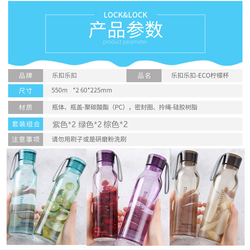 2件套550ml糖果色运动便携塑料水杯【塑料/颜色自选】