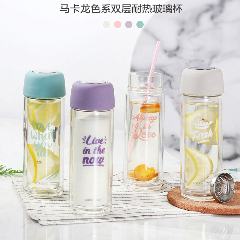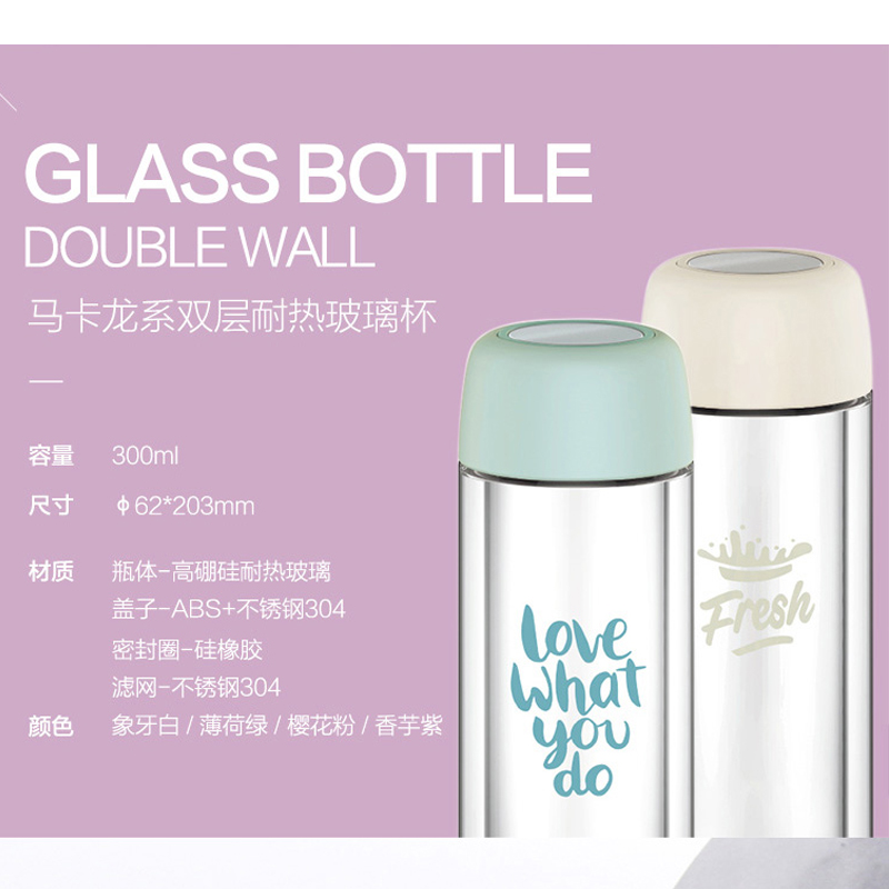 双层耐热300ml马卡龙色系玻璃杯水杯【玻璃/颜色自选】