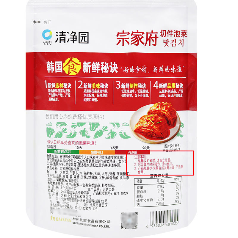 清净园韩式泡菜200gX4袋