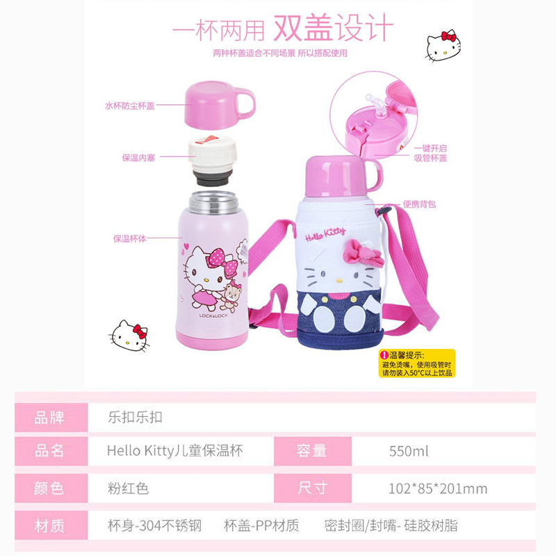 乐扣乐扣双杯盖吸管儿童保温杯 550ml【不锈钢/粉红色】