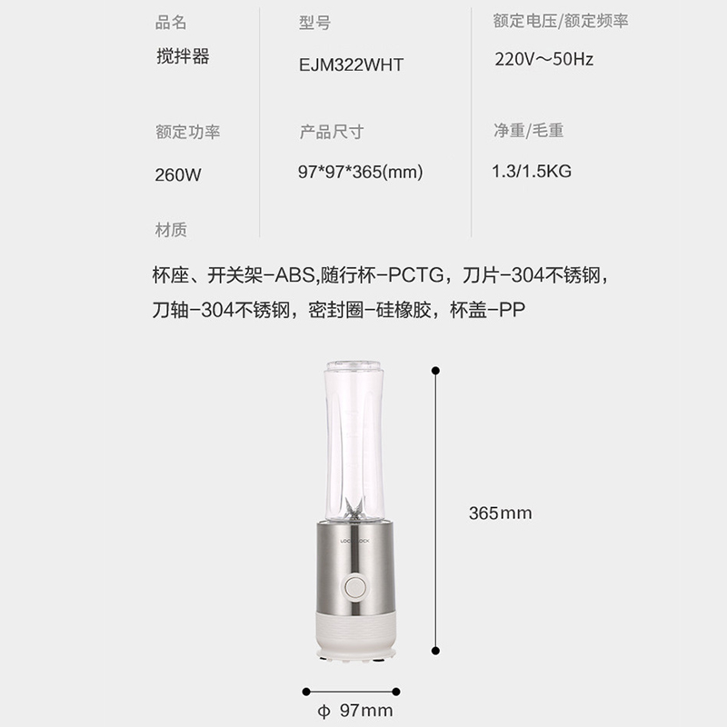 3杯按键式家用便携式搅拌机随身奶昔果蔬汁杯电动榨汁机【机身-ABS/白色】