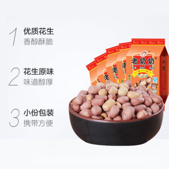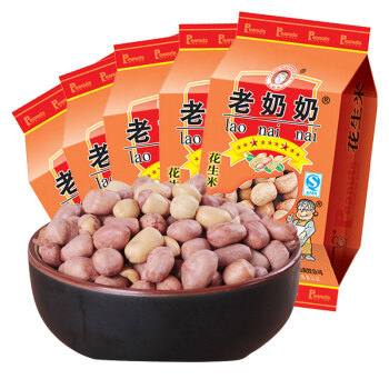 老奶奶 休闲零食每日坚果炒货 地方特产下酒小吃 带皮五香味花生米122g*5/袋