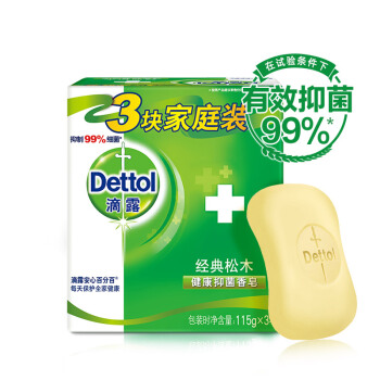滴露Dettol健康香皂经典松木 3块装(115g*3块) 抑菌99% 洗手洗澡沐浴皂肥皂 男士女士儿童通用