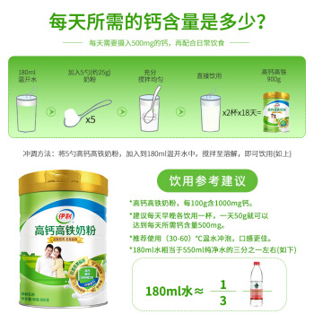 【生产日期新鲜】伊利奶粉 奶粉 学生青年女士奶粉高钙高铁奶粉900g罐装 男士牛奶粉 900g高钙高铁