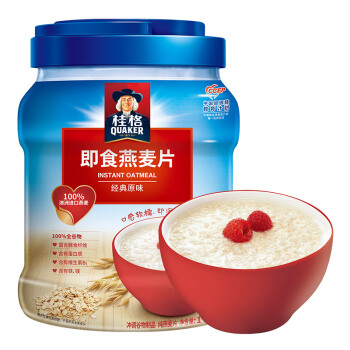 桂格(Quaker)早餐谷物,无添加蔗糖,膳食纤维,即食燕麦片,1000克,罐装(新老包装替换中)