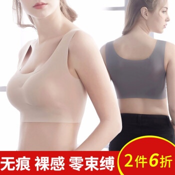 运动内衣>>莫代尔运动文胸女女士薄款无痕背心无钢圈美背内衣防震跑步女性感聚拢大码睡眠胸罩 肤色(2件6折) M(适合100-120斤)
