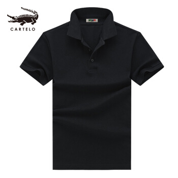 POLO衫>>卡帝乐鳄鱼 CARTELO 珠地棉短袖T恤男士纯色POLO衫全棉翻领大码t袖衫潮 MDT70008 黑色 175/L(145-160斤)
