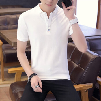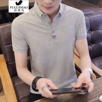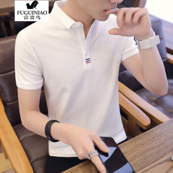 富贵鸟短袖t恤男2020年夏季新款POLO衫半袖衣服男商务休闲棉打底衫夏天男装衬衫领翻领 黑色 131至145斤-XL |