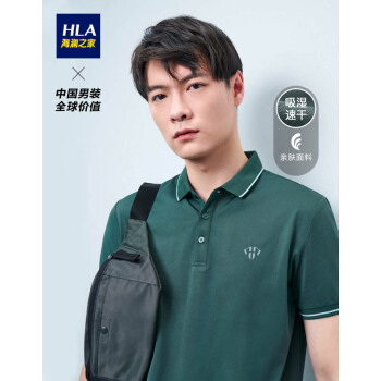 POLO衫>>HLA海澜之家舒适亲肤POLO衫2020夏季新品吸湿速干运动短T男HNTPD2Q121A 深绿2A 175/92A/L