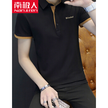 南极人短袖T恤男2020夏装新品半袖翻领纯色男士POLO衫男装打底衫 黑色 XL